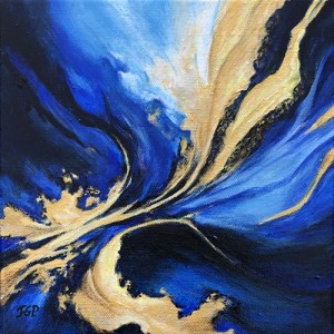 « Bleu et or », acrylique sur toile, 20 x 20 cm