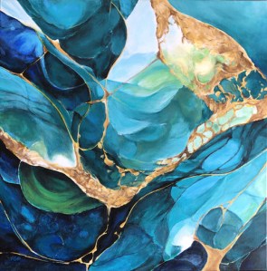 « Rêverie océanique #2 », acrylique sur toile, 60 x 60 cm